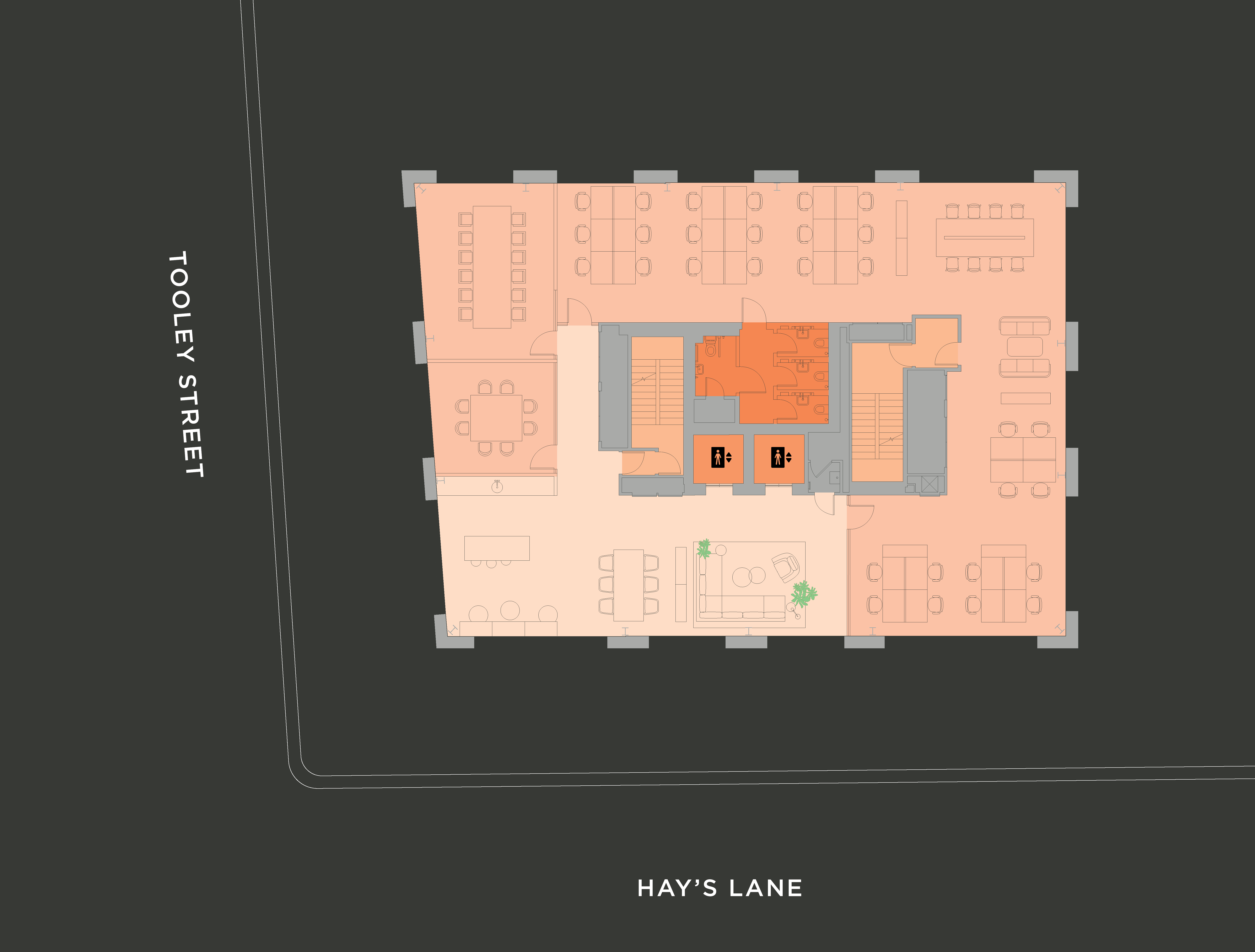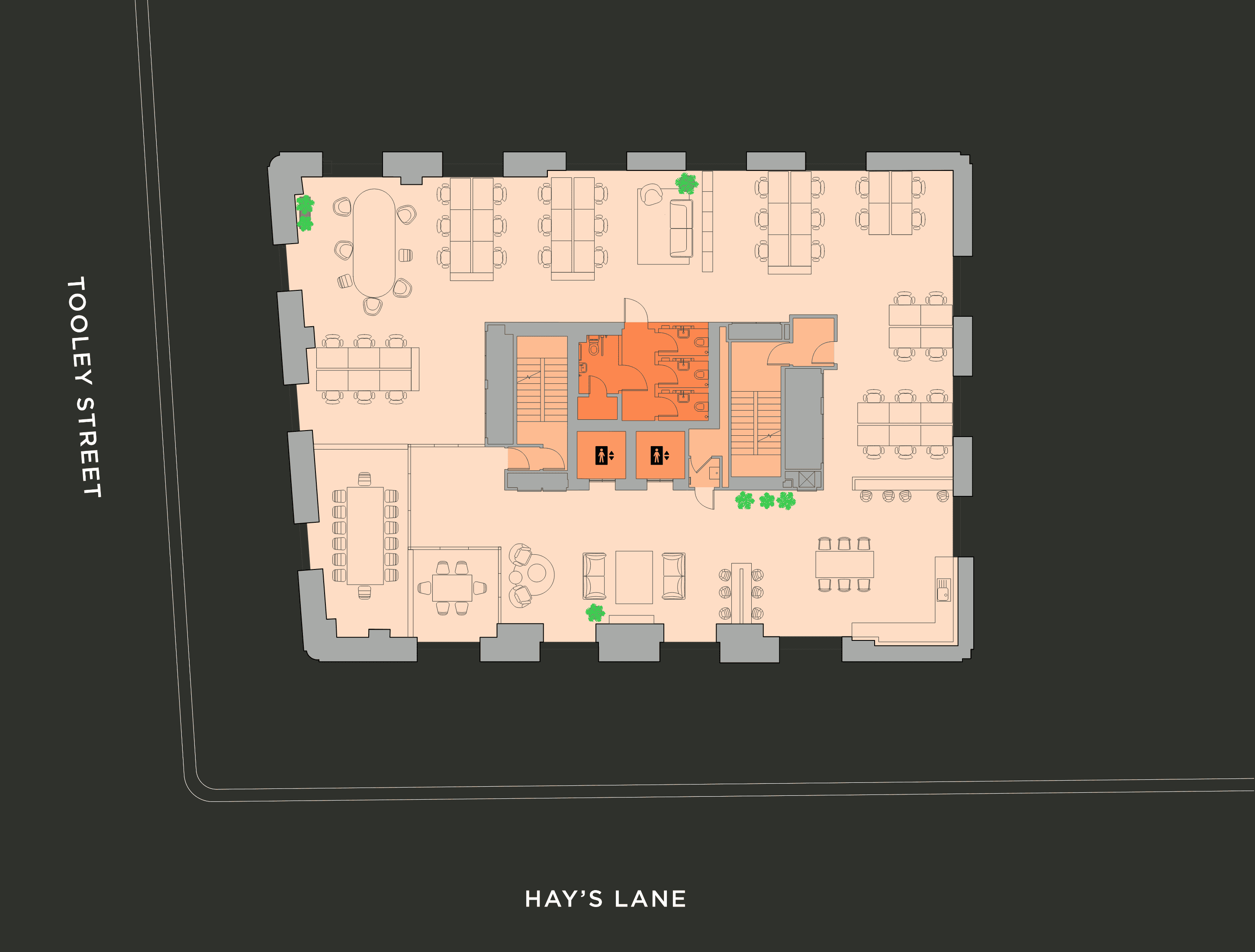 6 Hay’s Lane is a perfectly connected, intelligent workspace. Sensitively restored, it possesses all the character of a historic, wharf building, but possesses vastly improved operational facilities and details. Keeping in line with the rest of the Hay’s Galleria estate, 6 Hay’s Lane will deliver best-in-class offices, rich in character and nestled at the heart of a thriving, seven-day destination.